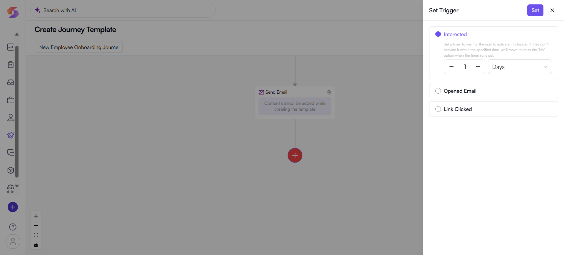 - After adding a trigger, you can define different actions for Yes (user engaged) and No (user didn’t engage).